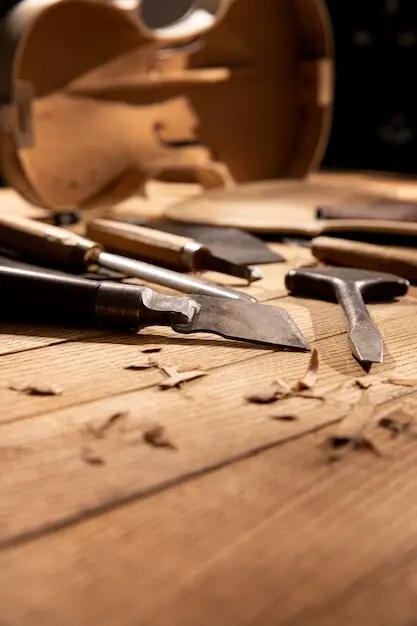 Herramientas del astillero: azuela, cepillos y sierras con memoria
